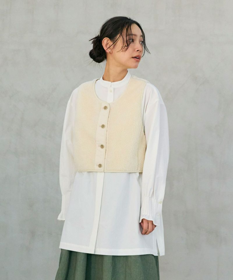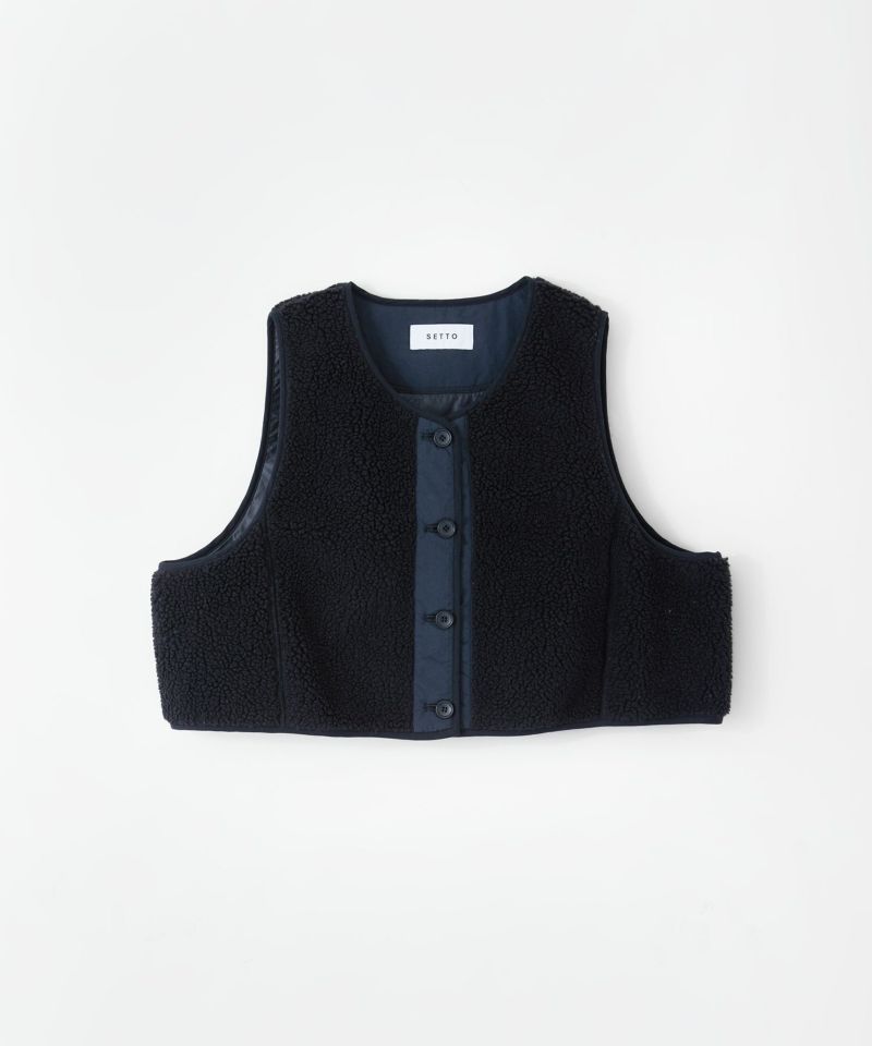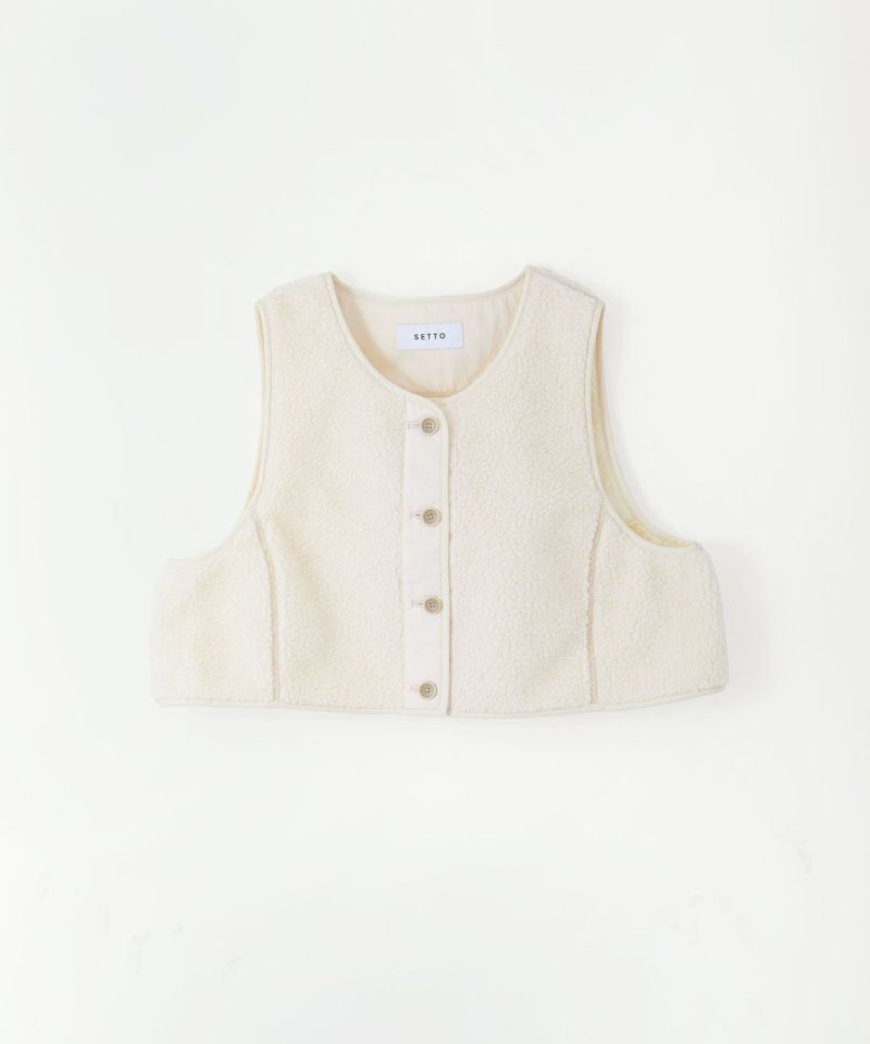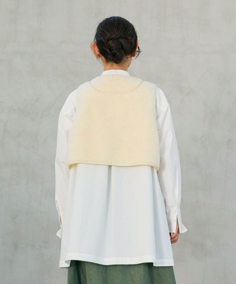 ふくらみとボリュームのあるボア素材で作った、ショート丈のベスト。