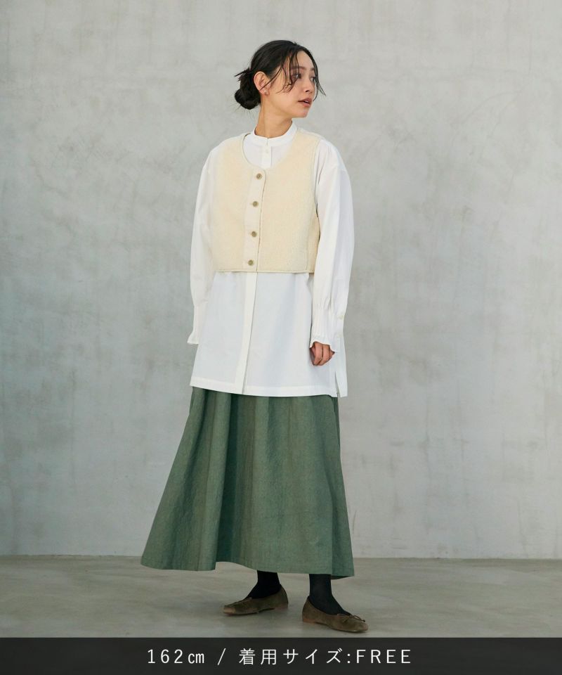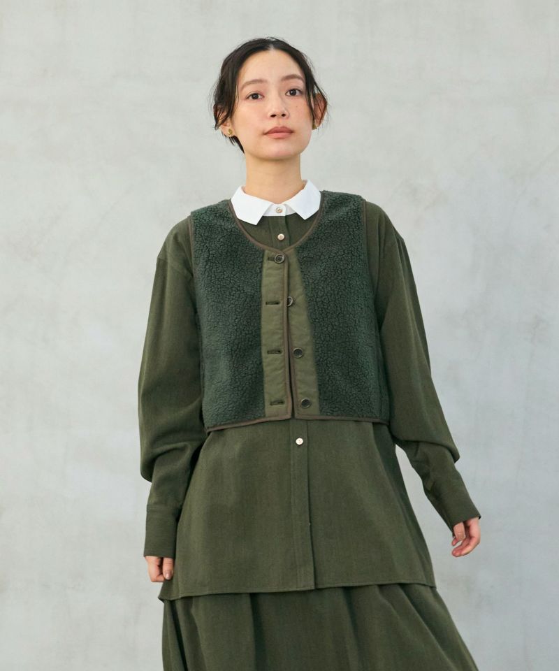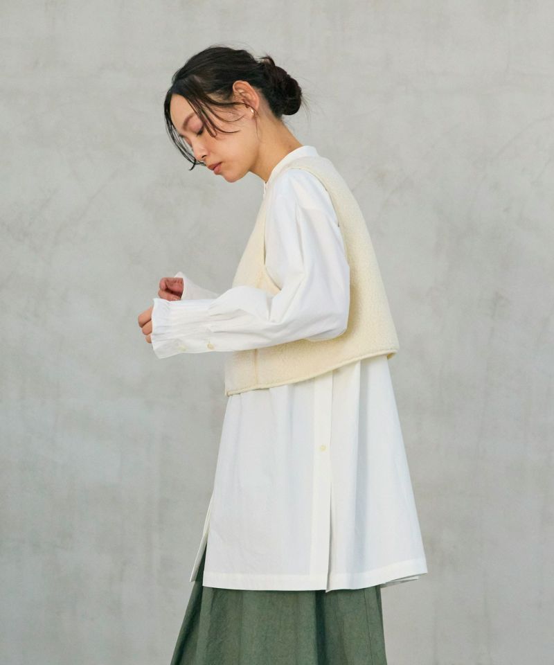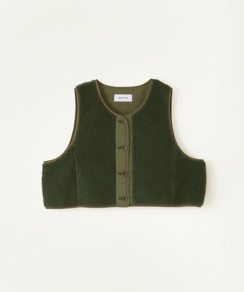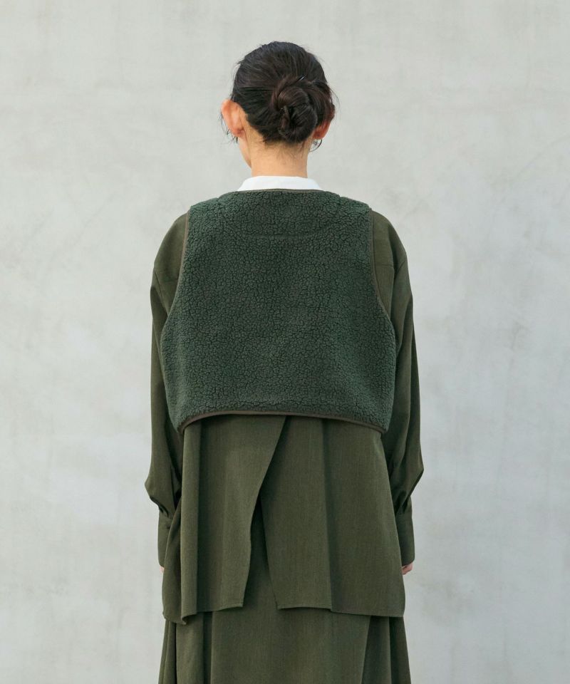 ふくらみとボリュームのあるボア素材で作った、ショート丈のベスト。