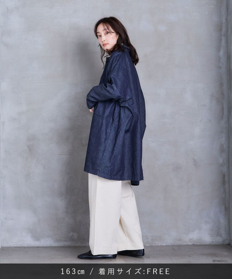 襟を立てても、寝かせても着用できるオーバーサイズコート。
