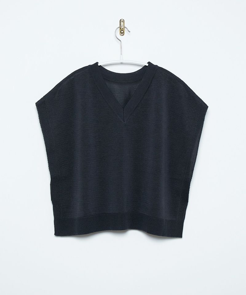 麻のようなドライな風合いに加工するギマ(擬麻)加工を施した1/15のニット素材。