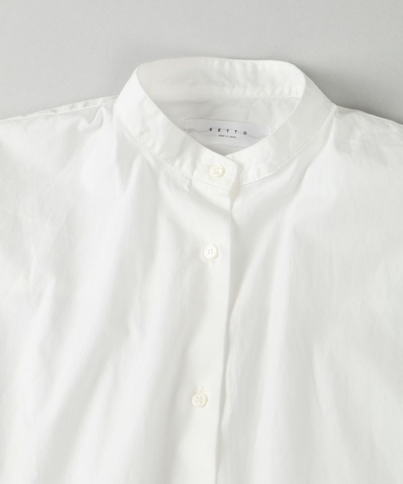 50番手のコットンを使ったブロード素材を使用。 打ち込み本数を減らしつつも、適度なハリ感のある生地です。