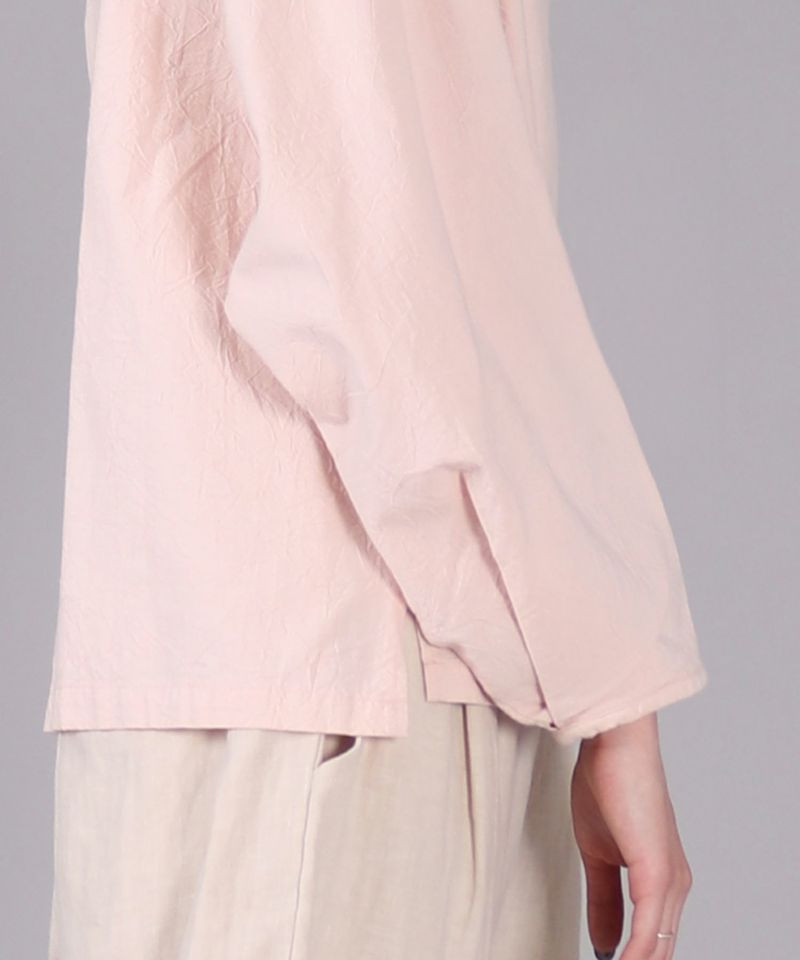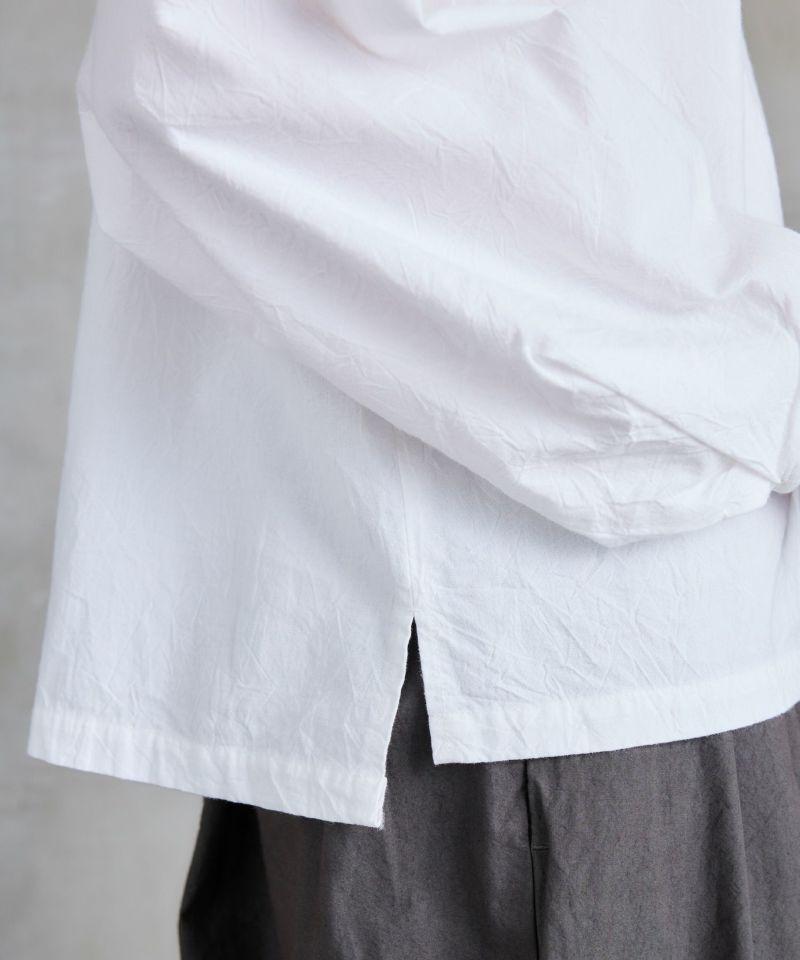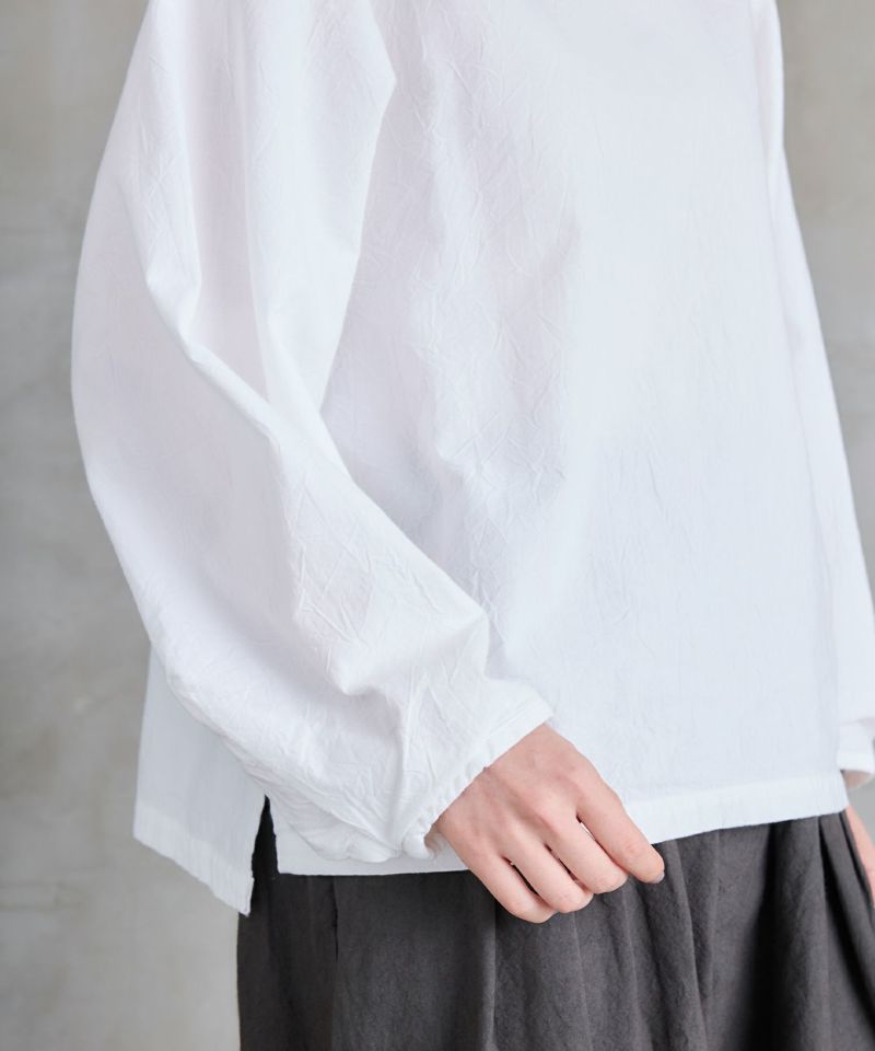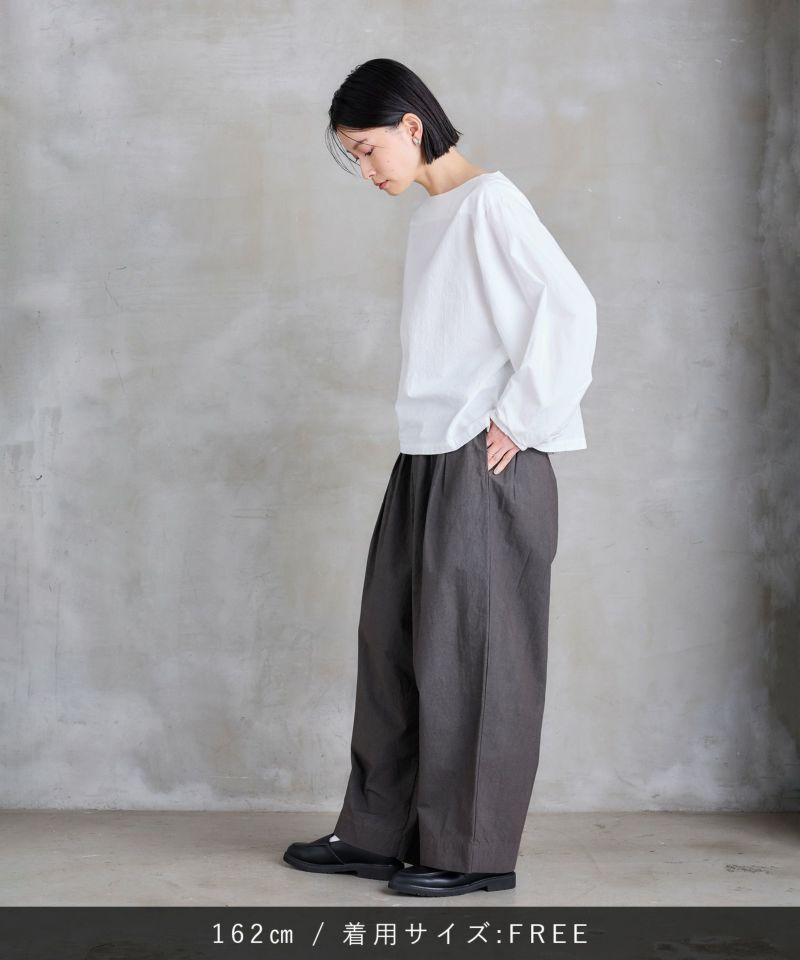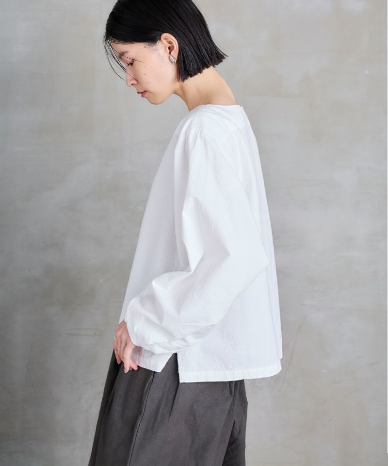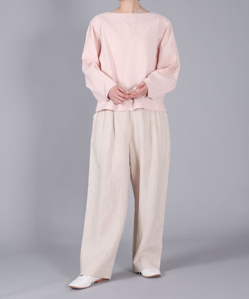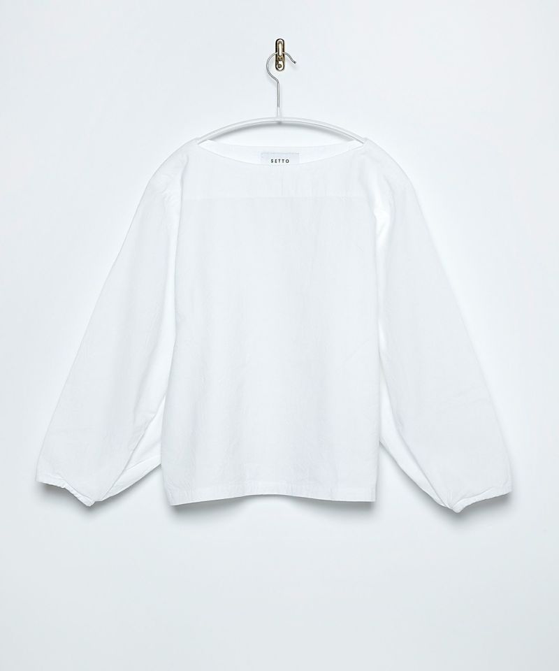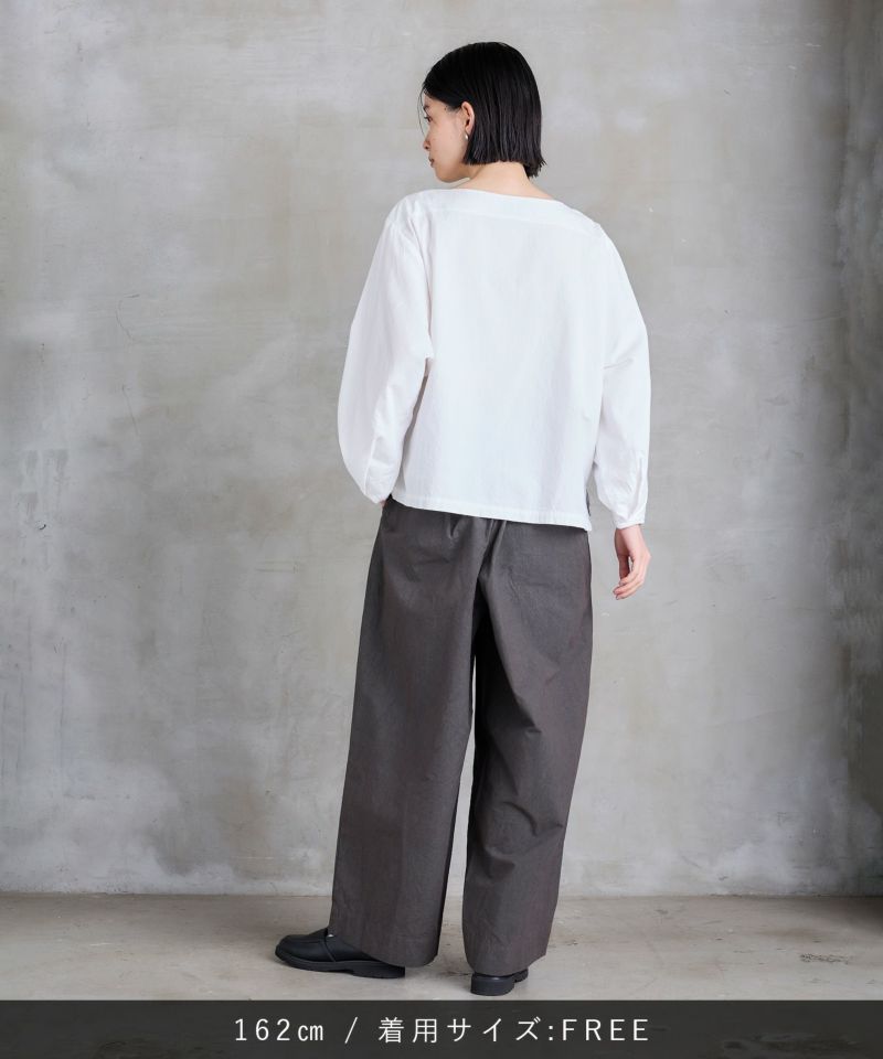 ボートネックタイプのスモック風シャツ。