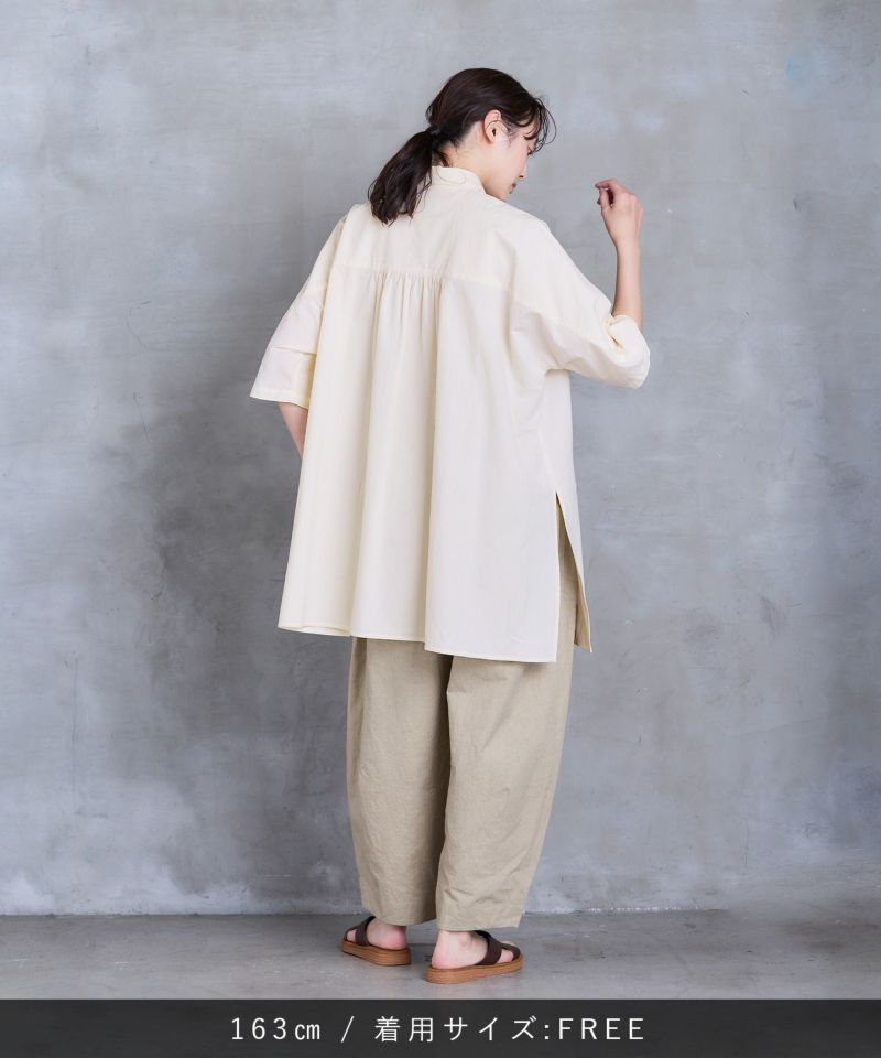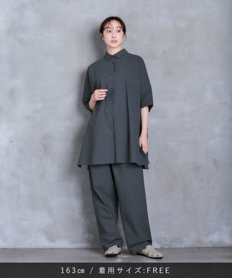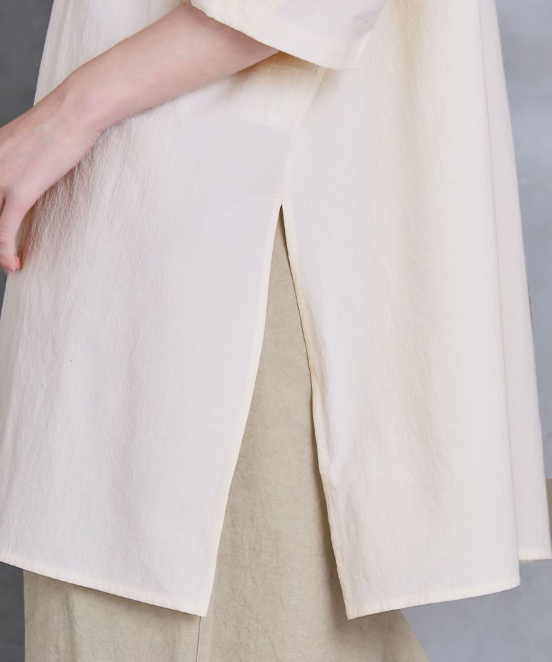 縦のラインが美しいミドルレングスの5分袖シャツ。