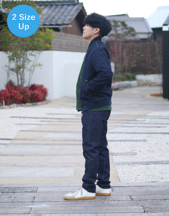 2サイズアップで穿けば、先ほど変わって重厚なアメカジの雰囲気に。