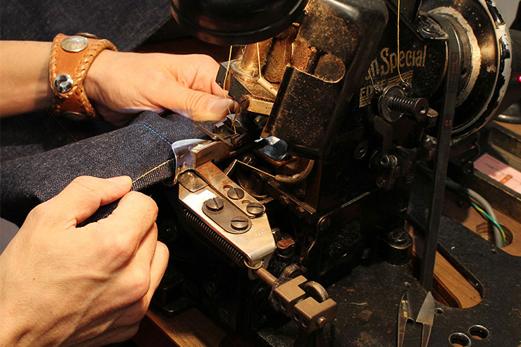 ジーンズ専用ミシン「ユニオンスペシャル」でチェーンステッチ仕上げにてお直しいたします。